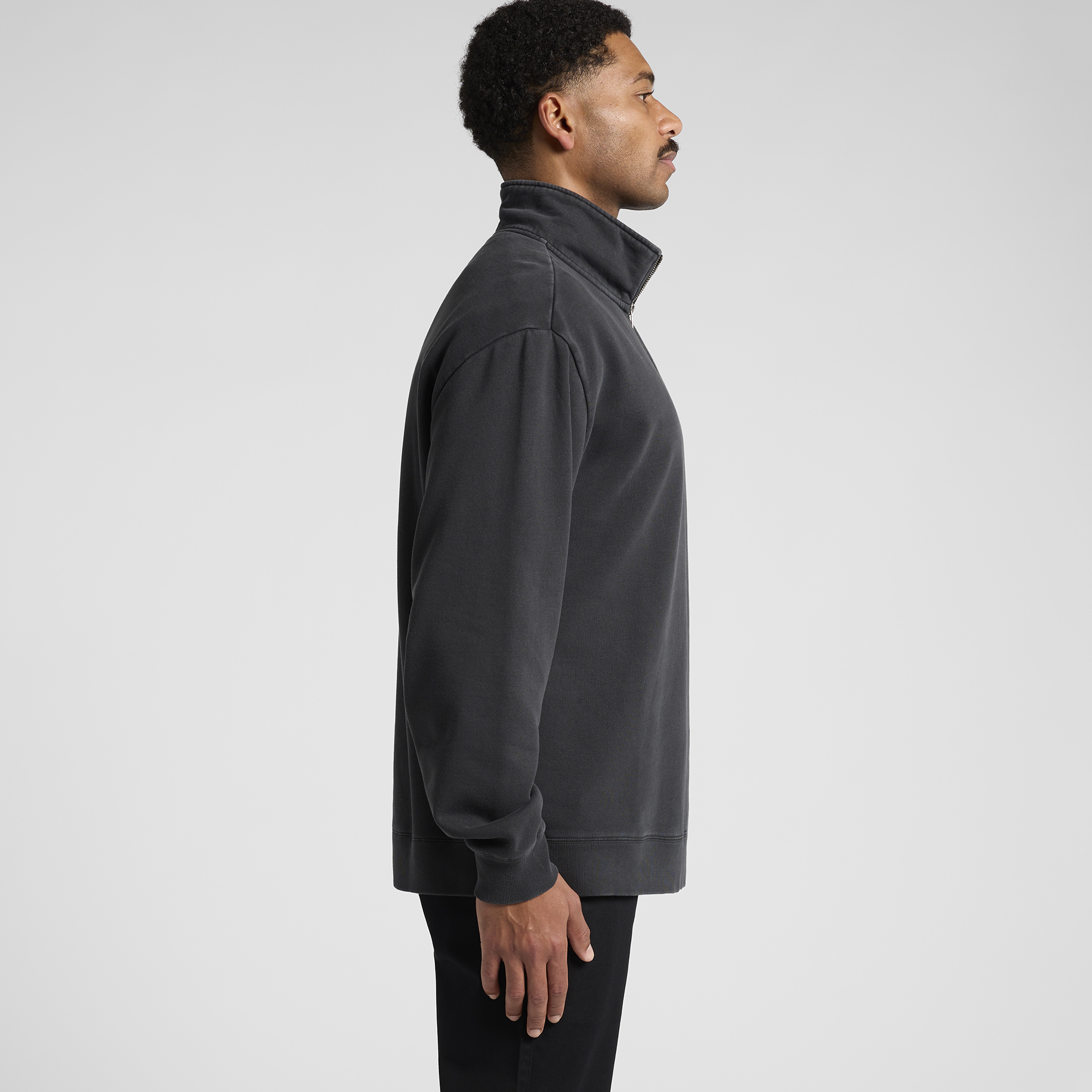 Construction: Garment dyed, mock neck, silver SBS zip at front placket, sleeve cuff & hem ribbing, CVC fleece, preshrunk to minimise shrinkage